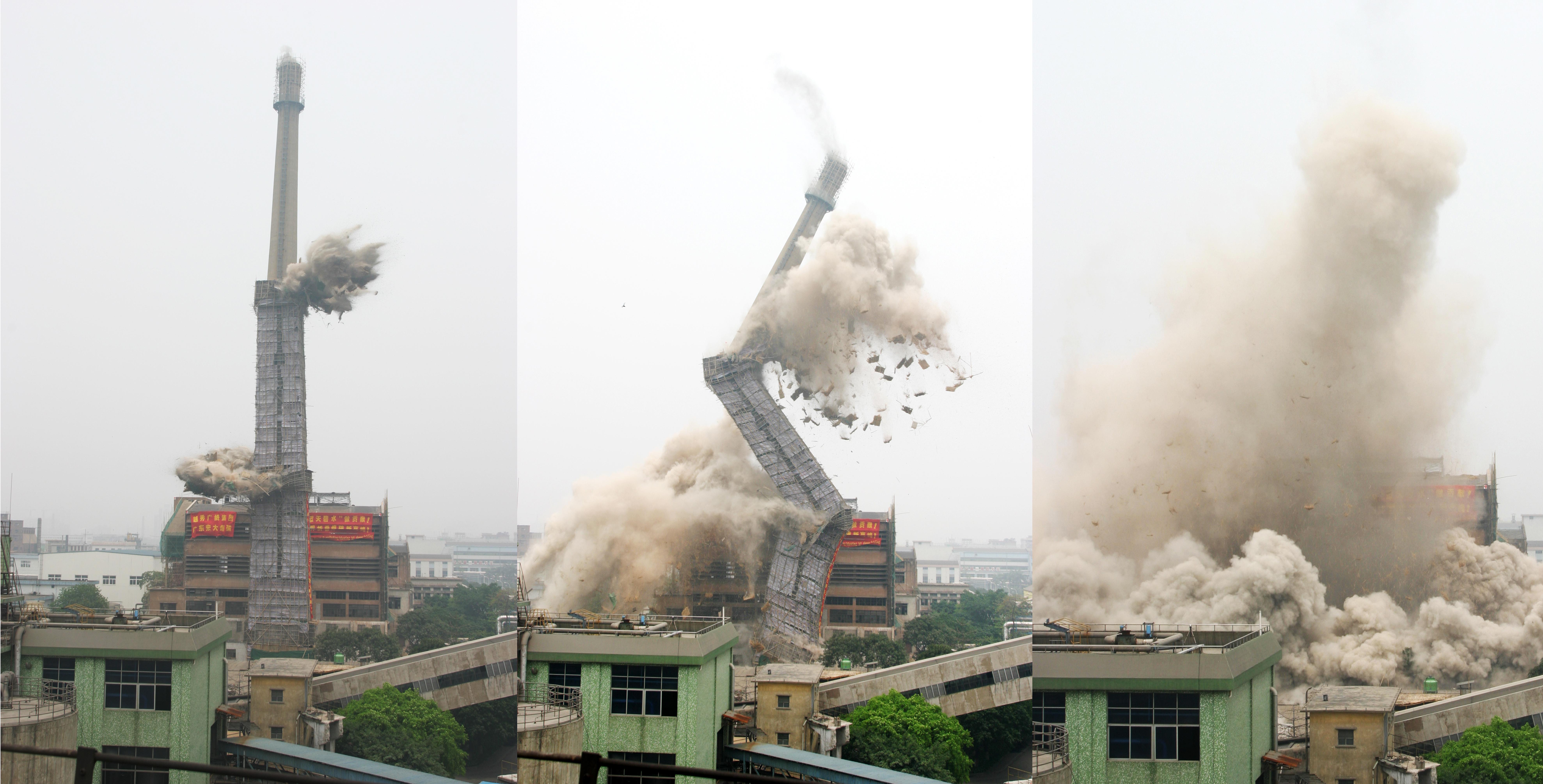 In August 2005, our company successfully implemented the 100 meter chimney three fold directional blasting demolition technology at Guangzhou Paper Mill, which was the first of its kind in the history of blasting in the world and won the first prize for scientific and technological progress from the China Engineering Blasting Association in 2006. This engineering system has solved the problem of stacking and dismantling of ultra-high buildings, indicating that China has fully matured in the basic theory and construction application of ultra-high building demolition. Hongda's application technology, which represents the leading level of China's blasting industry, has reached the world's leading level and has obtained a national technology invention patent certificate. The demolition of towering structures by blasting has been a forbidden zone for blasting in China since the 1990s, with disasters such as "reverse" dumping occurring in both the UK and South Africa, resulting in the breaking of the power plant that was in operation. To solve this problem, Hongda Company, based on years of research, undertook the demolition of two 120 meter chimneys at Maoming Petrochemical in 1995. The company's expert team, with solid theoretical foundation and rich construction experience, broke the curse of "nine out of ten chimneys sit" in China's blasting chimney industry. The two chimneys were steadily and accurately dumped onto the designed collapse centerline, which excited the blasting community nationwide. After continuous exploration by the company's expert team, Hongda Company implemented 150 high chimney folding blasting after the United States and Russia, and then successfully carried out the world's first three fold directional blasting demolition of high chimneys. Targeting the demolition of ultra-high buildings - deciphering the complex mechanism of ultra-high building demolition and enhancing the international competitiveness of China's blasting industry.