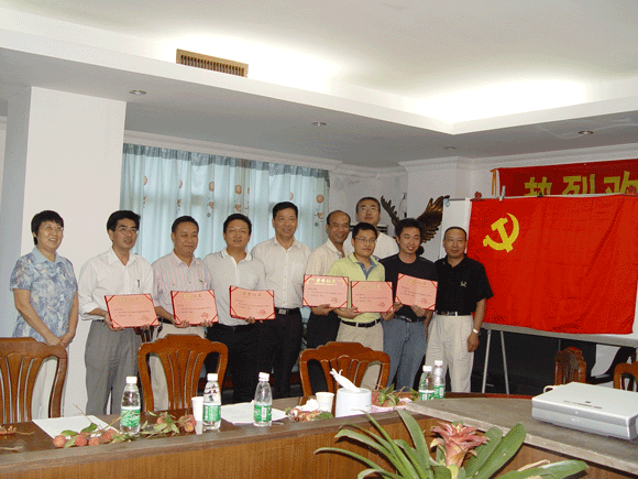 上午,公司组织全体党员及员工到增城大丰门森林公园进行野外活动,同时,加强相互间的交流,增进同事间的感情。下午,公司本部党员举行了庆“七一”暨2007年度优秀党员表彰大会。大会通过了预备党员徐步峰、孙叶山、朱志刚、孙海东、刘畅、罗伟涛、周育生、朱卫毅等八位同志的转正申请,并确定了吴平、王惠、王丽娟、杨珊、李艳、李萍丰的入党介绍人,最后大会表彰了荣获2007年度优秀党员的李彦军、崔晓荣、封建社、刘春林、杨树志、林再坚、徐明、张玥等八位党员。