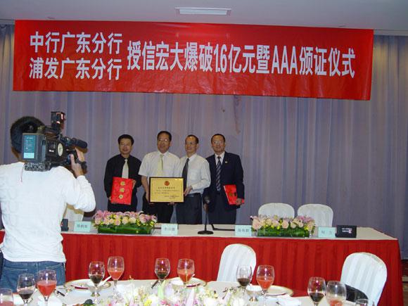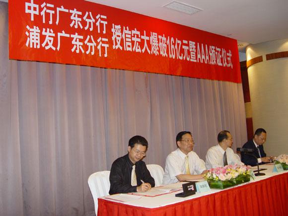 2006年5月31日,中国银行、上海浦东发展银行的广州分支机构分别给予我司8000万元的授信额度。同时,我司还获得中国银行AAA信用资格,此乃国内爆破企业首获高额度授信!