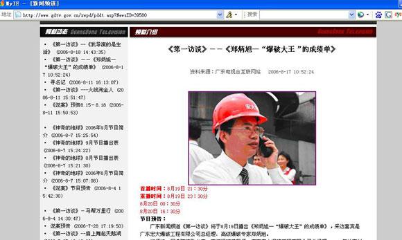 近日,广东新闻频道采访了我司总经理、高级爆破专家郑炳旭,广东新闻频道《第一访谈》于8月19日播出了《郑炳旭—“爆破大王”的成绩单》节目。