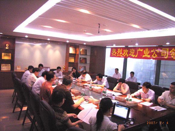7月4日上午,广业公司伍亮董事长、聂周荣副总经理、彭晓雷副总经理携广业公司办公室、资金财务部、企业管理部、资本经营部、法律事务部等人员莅临我司指导工作。
