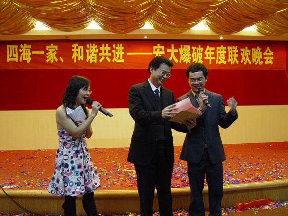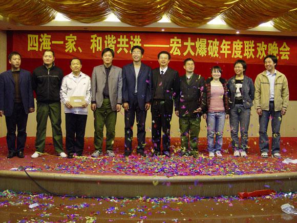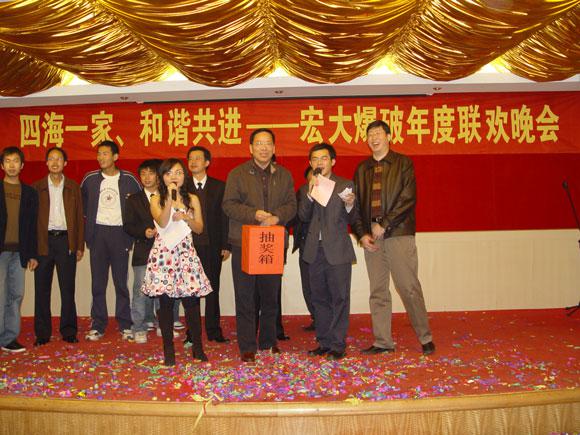 当天晚上,“四海一家,和谐共进——宏大爆破年度联欢晚会”隆重举行,来自全国各地项目部的宏大同仁踊跃参与节目,载歌载舞,其乐融融,共享喜悦之情。其间,公司领导和嘉宾分别上台抽奖,把欢乐带给现场所有员工。分布在全国各地的项目部同事还精心录制了贺年视频,为宏大公司领导和同仁拜年,充分展现了宏大人的团结精神和凝聚力。晚会精彩纷呈,既有太极拳表演、合唱、歌舞剧,又有双簧、小品、快板等,还有妙趣横生的游戏,晚会内容丰富多彩,博得了现场阵阵掌声。最后,经过各位公司领导和工会委员的评选,晚会评选出了最佳节目、最佳创意和最佳人气三项奖项,获奖名单如下: