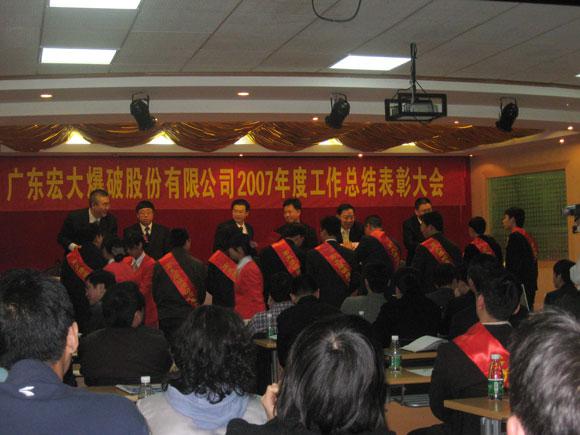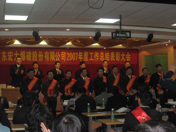 会议期间,宁煤集团闫书记向我司颁发了“惊天一爆,安然无恙”的荣誉牌匾,这表明了业主对我司在宁煤大峰矿所取得的骄人成绩给予了充分的肯定和表扬。会议还隆重表彰了2007年度优秀团队、优秀员工以及公司工会组织的征文比赛获奖人员,公司领导及嘉宾为获奖者颁奖。优秀团队以及优秀员工代表分别作了表态发言,表示要戒骄戒躁,将继续努力进一步发扬宏大精神为公司的战略目标实现作出新的贡献。