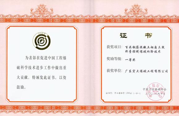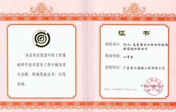 会议宣布了第三届中国工程爆破协会科学技术奖评选结果,我司“百米钢筋混凝土烟囱三段折叠控制爆破拆除技术”荣获一等奖,“84.8m高薄壁双曲线冷却塔控制爆破拆除技术”荣获二等奖,李战军博士的论文《建筑物爆破拆除粉尘治理及其机理研究》荣获青年优秀论文一等奖。