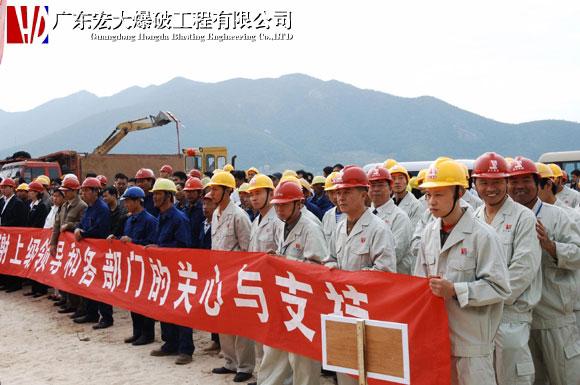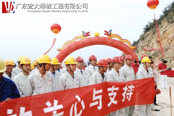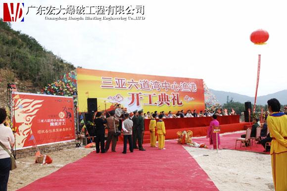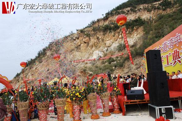 广东宏大爆破工程有限公司在六道湾中心渔港工程承接了爆破开山取石为渔港工程的海堤和码头提供块石的工程,宏大爆破工程有限公司总经理郑炳旭出席了这次隆重的典礼。