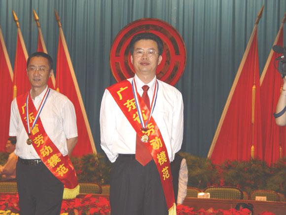 2006年4月28日,郑炳旭总经理接受广东省委、省政府颁发的“广东省劳动模范”光荣称号。享受国务院特殊津贴专家、高级爆破工程师、北京科技大学博士生导师、中央电视台《东方之子》新闻人物……从事爆破行业20多年来,郑炳旭总经理先后多次荣获国家科技进步二等奖、水利部科学技术进步一等奖、广东省科技进步二等奖、“省属煤炭系统科技进步先进工作者”、中国工程爆破协会科技进步一等奖等一系列重要奖项。在2006年度广东省劳动模范评选中,我司郑炳旭总经理再次脱颖而出,再获殊荣。