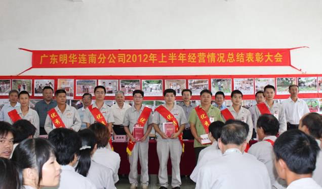 2012年9月11日上午,广东明华连南分公司2012年上半年经营情况总结表彰大会在连南分公司隆重召开。出席本次表彰大会的有广业公司党委副书记洪旗歌、宏大公司总经理郑炳旭、执行总经理方健宁、民爆事业部总经理郑永伟及其他相关领导。