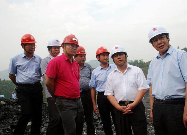 湖南省盛茂林副省长(右二)、大唐集团公司湖南分公司副总经理罗日平(右一)、湖南涟邵建工集团总经理李萍丰(前左一)在现场检查