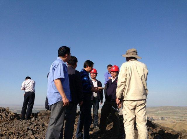 2013年5月9日,辽宁成大股份有限公司董事、总裁葛郁;新疆宝明矿业有限公司副总、矿长王广明一行在我公司新疆片区总经理张耿城、新疆宝明项目部副经理张万忠等人的陪同下,来到了我公司承建的新疆宝明油页岩露天矿首采二区施工现场,关心和了解整个二采区的施工作业情况。