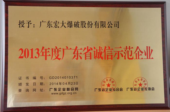 4月23日,由广东省企业家联合会、广东省企业家协会主办的,以“全面深化改革,发展混合所有制经济——我们共同的机遇”为主题的,第20届广东省企业家活动日在广州白云国际会议中心隆重举行。省国资委领导、省政府相关领导、地市经信局、企联、行业协会领导、相关企业家代表及受表彰的企业代表出席了会议。其中,广东宏大爆破股份有限公司获得了“2013年度广东省诚信示范企业”的称号。