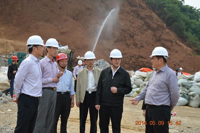 在繁昌县峨山头废弃矿山治理施工现场,贺懋燮认真聆听了公司技术人员对峨山头废弃矿山治理项目基本情况以及植被恢复技术的介绍,实地察看了边坡挂网、团粒喷播作业情况,仔细询问了公司环境治理的规划,并对公司开展的环境治理工作给予高度肯定。