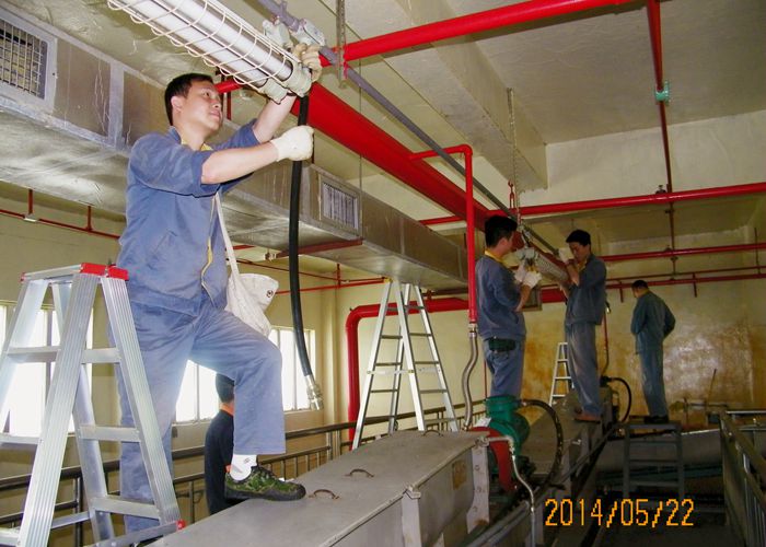 为切实做好整改工作,5月22日起韶关分公司一车间生产线停止生产,三车间电工班长组织全班职工对一车间生产线的电器防爆接线进行整改。他们扛着梯子、背着工具、手拿套管,穿梭于工房间,一会儿爬上,一会儿跳下,把不符合行业要求的电机、电扇、照明接线拆卸下来, 换上具有防爆、防尘功能的软性套管。由于工作量大,时间紧,任务急,为了能尽快完成整改项目,安全生产,他们忍受着日趋炎热的天气,在没有任何降温措施的环境中加班加点、忘我工作,用实际行动践行了:安全生产、人人有责;安全工作、重在落实;安全红线、必须坚守!