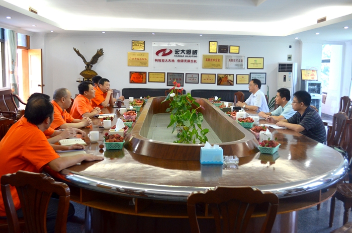 6月26日,广东省经济和信息化委员会副主任吴育光、民爆处副处长孙英祥及主任科员盛明杰一行3人莅临广东宏大爆破股份有限公司全资子公司:广东宏大增化民爆有限责任公司(以下简称:增化公司)视察。
