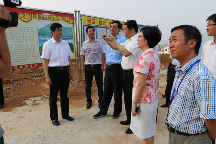 7月21日下午,安徽省委常委、宣传部部长曹征海一行二十余人在芜湖市委书记高登榜、芜湖市委常委、繁昌县委书记单向前、繁昌县国土局局长王军、广东宏大爆破股份有限公司控股子公司宏大国源(芜湖)资源环境治理有限公司(以下简称宏大国源公司)总经理王铁、副总经理杨家富等陪同下来到峨山头废弃矿山治理点视察工作。