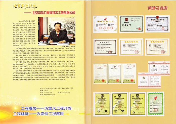 中科力创建于1989年,成立之初,两院院士、力学所原所长郑哲敏先生给予大力支持。经过多年的实践和不懈努力,公司取得了多项专有技术和省部级工法,其中公司独家开发采用的水下淤泥质软基的爆炸处理法,有效解决复杂环境下的爆炸挤淤难题,并取得良好效果。《水抛石爆破挤淤筑堤技术》由中国爆破协会鉴定为国内领先水平,并获得科学技术奖二等奖。
