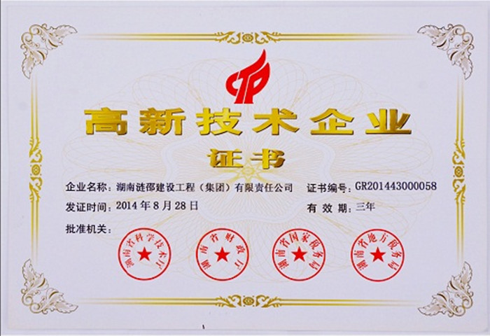 1月9日,广东宏大爆破股份有限公司控股子公司:湖南涟邵建设工程(集团)有限责任公司(以下简称:涟邵建工)在湖南省科学技术厅领回了“高新技术企业证书”(证书编号:GR201443000058,有效期三年)和“高新技术企业”标牌。近日,湖南省科学技术厅、湖南省财政厅、湖南省国家税务局、湖南省地方税务局联合公布了2014年湖南省第一批高新技术企业名单(湘科高办字[2014]158号),涟邵建工榜上有名。