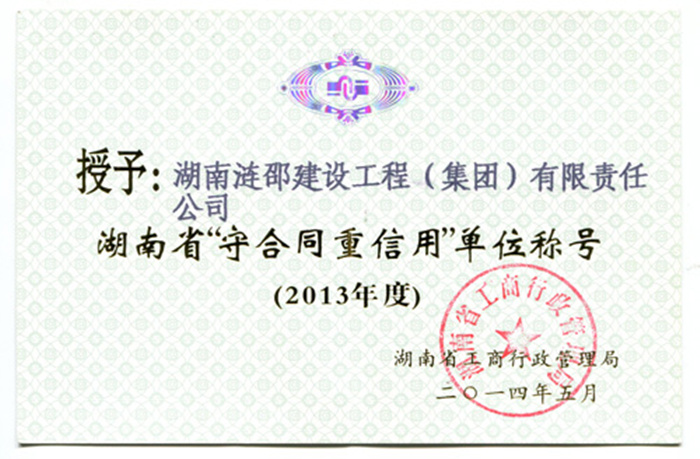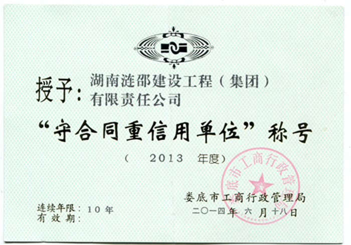 同时,公司还获得了娄底市工商行政管理局与湖南省工商行政管理局颁发的“守合同重信用单位”称号以及“湖南诚信百强品牌”荣誉证书。