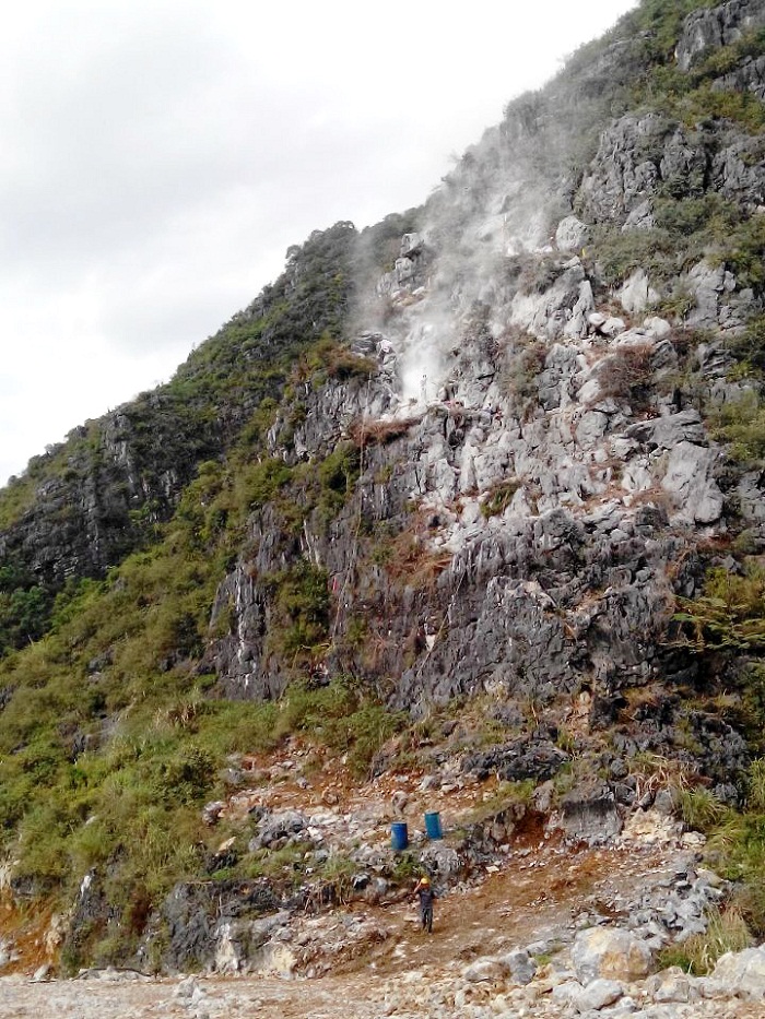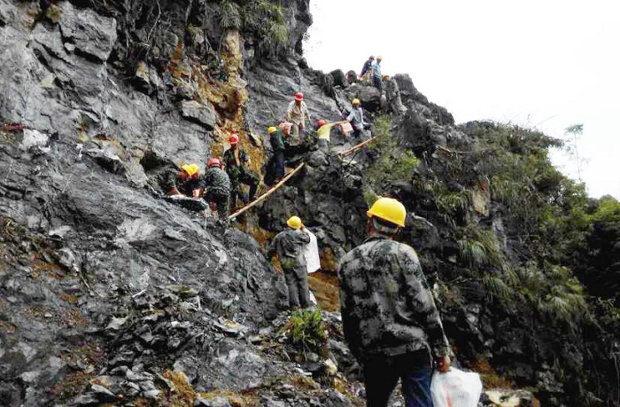开工初期,施工面临诸多困难和安全隐患。古岸山山势险峻,上山道路是从山谷往上沿着悬崖边自修的只容一人通过的小道,毒蛇、蜈蚣、蚊子、马蜂、浮石等诸多危险源时刻威胁施工人员的安全。山上的石头如尖刀,把可以踩弯钢钉的劳保鞋削的破烂不堪;山里的温度如蒸笼,不得不随身携带防暑药;山中的沟壑深不见底;接近90度的峭壁需要绳子才能爬上去;工作服不到半月就磨破一套;笨重的钻孔机需要拆成四部分才能搬到钻孔区域;危石、孤石、浮石犹如幽灵盘旋上空;开挖时常发生坍塌,落石不断;重达上百吨的石头从200米山上翻滚而下,尘土飞扬,响声如雷……是的,危险与困难时刻在挑衅我们的意志,但不屈不挠的宏大人有办法、有能力、有智慧确保施工安全,并按时交付出合格工程。