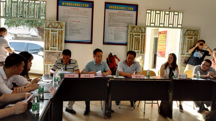 9月22日下午,在城月镇党委副书记谭彤裕等陪同下,宏大公司及广业其他扶贫责任单位在家寮村委会与镇、村干部进行了座谈交流。座谈会上,广业公司驻村队队长兼第一书记熊安逸介绍了家寮村基本情况、致贫原因、前期“精准扶贫”工作开展情况以及下一步精准扶贫的意见和建议;家寮村党支部书记徐天增提出家寮村和贫困户脱贫的具体需求和建议;城月镇谭彤裕副书记要求镇村干部认真履行脱贫的主体责任,全力配合广业公司精准扶贫工作。方书记代表宏大公司扶贫责任单位发言,表态将全力支持广业公司驻村工作队开展精准扶贫工作,共同努力帮助家寮村早日实现脱贫致富。