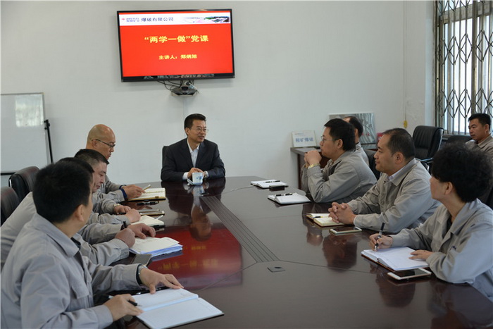 10月12日,公司董事长、党委副书记郑炳旭到挂点企业鞍钢矿业爆破有限公司,挂点基层党支部制药作业区党支部讲授“两学一做”党课,鞍矿爆破公司领导班子成员、部门负责人以及部分骨干人员参与听课。在课上,郑炳旭董事长强调要进一步深入开展“两学一做”学习教育,打牢“学”这个基础,抓住“做”这个关键,要把“两学一做”学习教育落实到实际工作中,越是困难当前,各党支部越要积极发挥作用,以岗位、工序、车间为单位开展评比、竞赛、合理化建议等活动,调动全体党员以及职工的积极性和创造性,努力成为企业降本增效的主力。同时,号召全体党员要坚持以学促做,知行合一,以扎扎实实的工作成效推动全年生产经营任务完成。课后,郑炳旭董事长还与制药作业区部分党员干部就作业区目前生产现状进行了调研活动,对作业区提出的问题进行了耐心细致的解答。