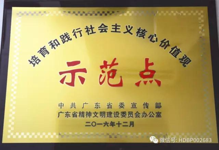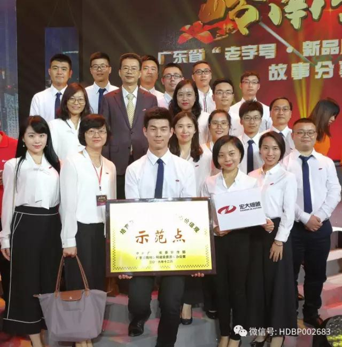 4月19日下午,由省委宣传部主办,省老字号协会、省企业诚信建设促进会协办,广东广播电视台、羊城晚报报业集团承办的广东省“老字号”“新品牌”企业核心价值观故事分享会在广州举行。省直有关单位领导、专家学者、企业代表约500人参加了活动。此次故事分享会是我省推进企业培育和践行社会主义核心价值观宣传教育活动之一。会上对择优评选出来的17家重诚信、口碑好的“百年老店”和“新品牌”企业进行了颁奖,宏大公司作为“新品牌”企业获“培育和践行社会主义核心价值观示范点”荣誉称号。