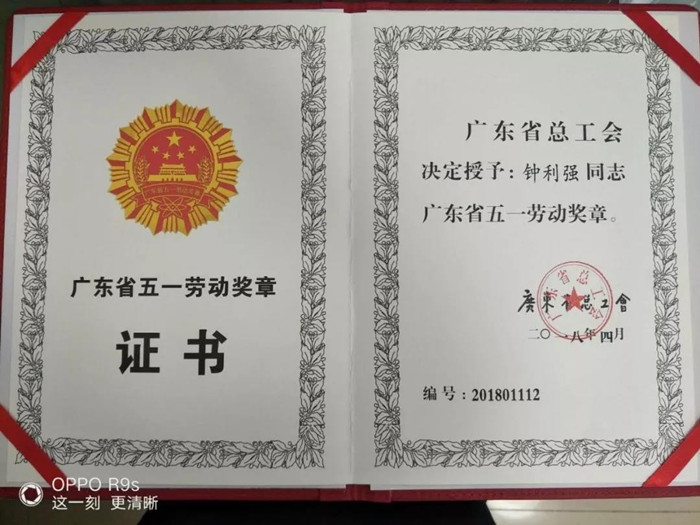 五一劳动奖章证书