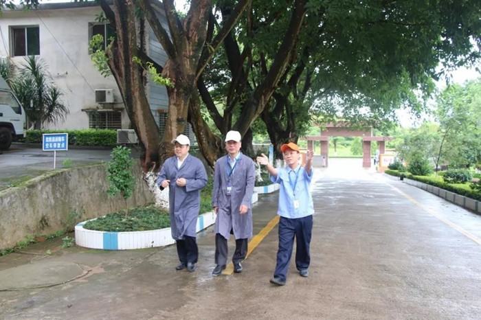 广业集团余志良董事长及梅州市闫景军副市长在华威化工总工程师的陪同下到生产线检查安全生产工作