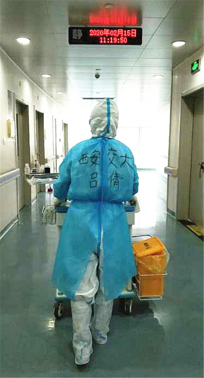 疫情发生后,吕倩一直关注疫情进展,作为一名党员,总想着能前往一线贡献自己的一份力量。当接到报名通知时,她毫不犹豫主动请缨。经组织同意,2月7日,吕倩随交大一附院第四批援鄂抗疫国家医疗队奔赴武汉,成为重症监护室的一名抗疫“战士”,用自己的实际行动践行了作为一名共产党员的初心与使命。
