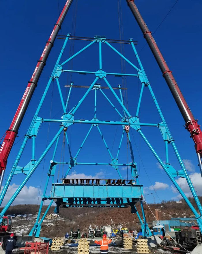 近期,在两台重型吊车悬吊下,塞尔维亚最大、最重的Ⅵ型凿井井架从地面缓缓升起,经过近6个小时的组对吊装和空中合拢,主体构件精准就位,吊装顺利完成。