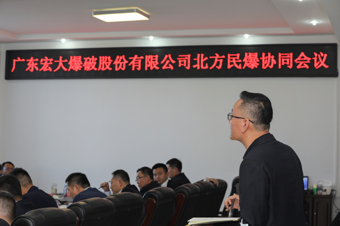 近日,宏大爆破总经理梁发主持了北方民爆矿服一体化协同战略工作会议。内蒙古吉安化工党委书记、董事长刘玉文、内蒙古日盛民爆集团董事长冯永兴、甘肃省行业主管领导及嘉宾,宏大爆破公司领导及辽宁、北京、黑龙江区域主要负责人,吉安化工领导及职能部门负责人参加会议。会议主要研讨了北方民爆协同规划,报告的主题是民爆矿服一体化服务。