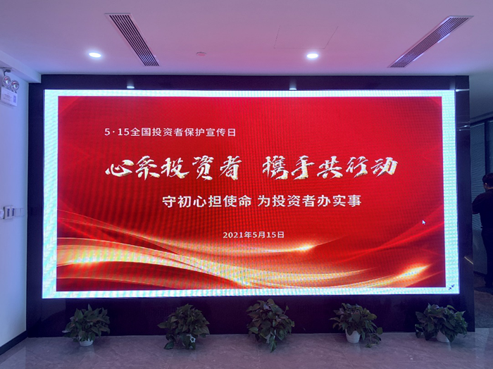 为切实保护投资者权益,推动解决一批广大投资者关心的实际问题,进一步做好投资者保护工作,广东宏大爆破股份有限公司积极响应中国证监会和广东监管局对投资者保护宣传工作的要求,开展了“5.15全国投资者保护宣传日”活动,以党史学习教育为主线,在公司公共电子显示屏上发布投资者保护宣传标语及红色金融史,大力宣传红色金融发展史;并向公司员工宣传普及了《证券法》《刑法修正案(十一)》《上市公司信息披露管理办法》等最新法律法规及政策知识。