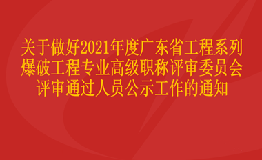 根据原广东省人事厅《关于印发〈广东省高、中级专业技术资格评审委员会评审通过人员公示管理办法〉的通知》(粤人发〔2002〕236号)要求,现将我省2021年度广东省工程系列爆破工程专业高级职称评审委员会评审通过人员名单返回你单位进行公示,并同时在广东宏大控股集团股份有限公司网站进行公示