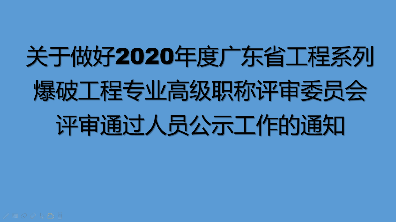 各有关单位: 根据原广东省人事厅《关于印发〈广东省高、中级专业技术资格评审委员会评审通过人员公示管理办法〉的通知》(粤人发〔2002〕236号)要求,现将我省2020年度广东省工程系列爆破工程专业高级职称评审委员会评审通过人员名单返回你单位进行公示,并同时在广东宏大爆破股份有限公司(www.hdbp.com)网站进行公示,公示期为5个工作日,请你单位按照公示管理办法要求和公示格式,将公示张贴于单位的公告栏或显著位...