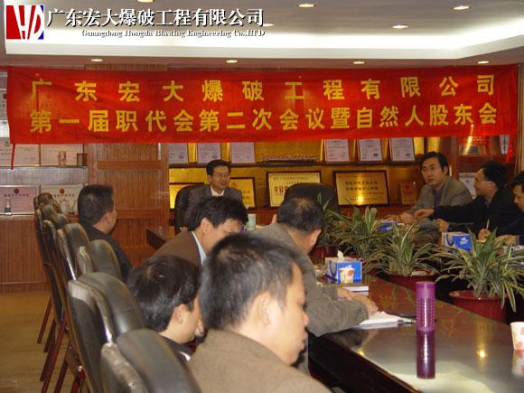 根据《职代会实施细则》及公司的有关规定,2006年2月27日在我司五楼会议室,第一届职工代表大会第二次会议暨自然人股东大会顺利召开。 会上通报了参股成立(广州)爆破安全评估及监理公司事宜,并推荐我司郑炳旭总经理为广东省劳动模范候选人。
